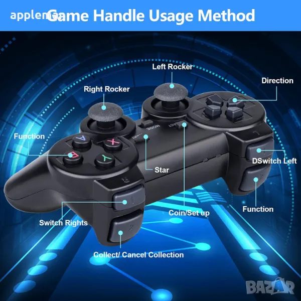 Поддържа 9 игрови симулатора: MAME/FC/GB/GBA/GBC/MD/SFC/PS1 - Playstation 1/ATARI2600/ATARI7800. А двата безжични джойстика в комплекта са черешката на тортата. Гладки линии, опростен и красив дизайн, plug and play, безжични джойстици, с обхват на управление до 8 метра. В сравнение с кабелните джойстици с къси кабели, безжичните избягват приближаването до телевизора и предпазват очите ви по-ефективно. HD изход: Поддържа 4k телевизионен видео сигнал с висока разделителна способност (1080p / 720p) и монитори и с HDMI вход.