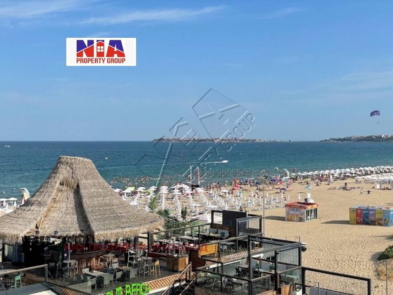 Ниа Пропърти Груп продава обзаведен, двустаен апартамент, на първа линия море. Разположен на висок 5-ти етаж от 8, в тухлена сграда с асансьор, който осигурява отлична гледка към залива и морето. Жилището е разгънато върху 80м2 площ (с общи части) и предлага - комфортна дневна - с трапезна част, отделно обособена кухня и просторен кът за отдих , самостоятелно WC, спалня с достъп до втори санитарен възел с душ кабина, голяма тераса с гледка море. Апартаментът е климатизиран и се продава с мебелите от снимките и цялото оборудване.