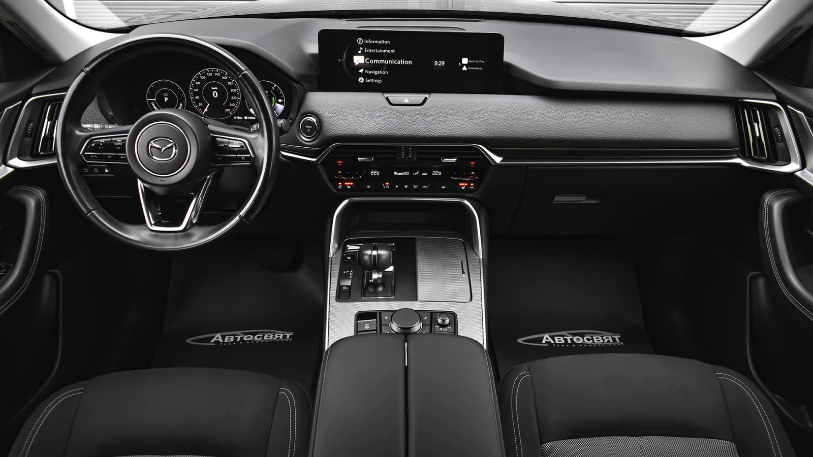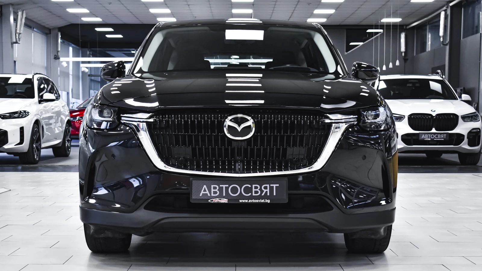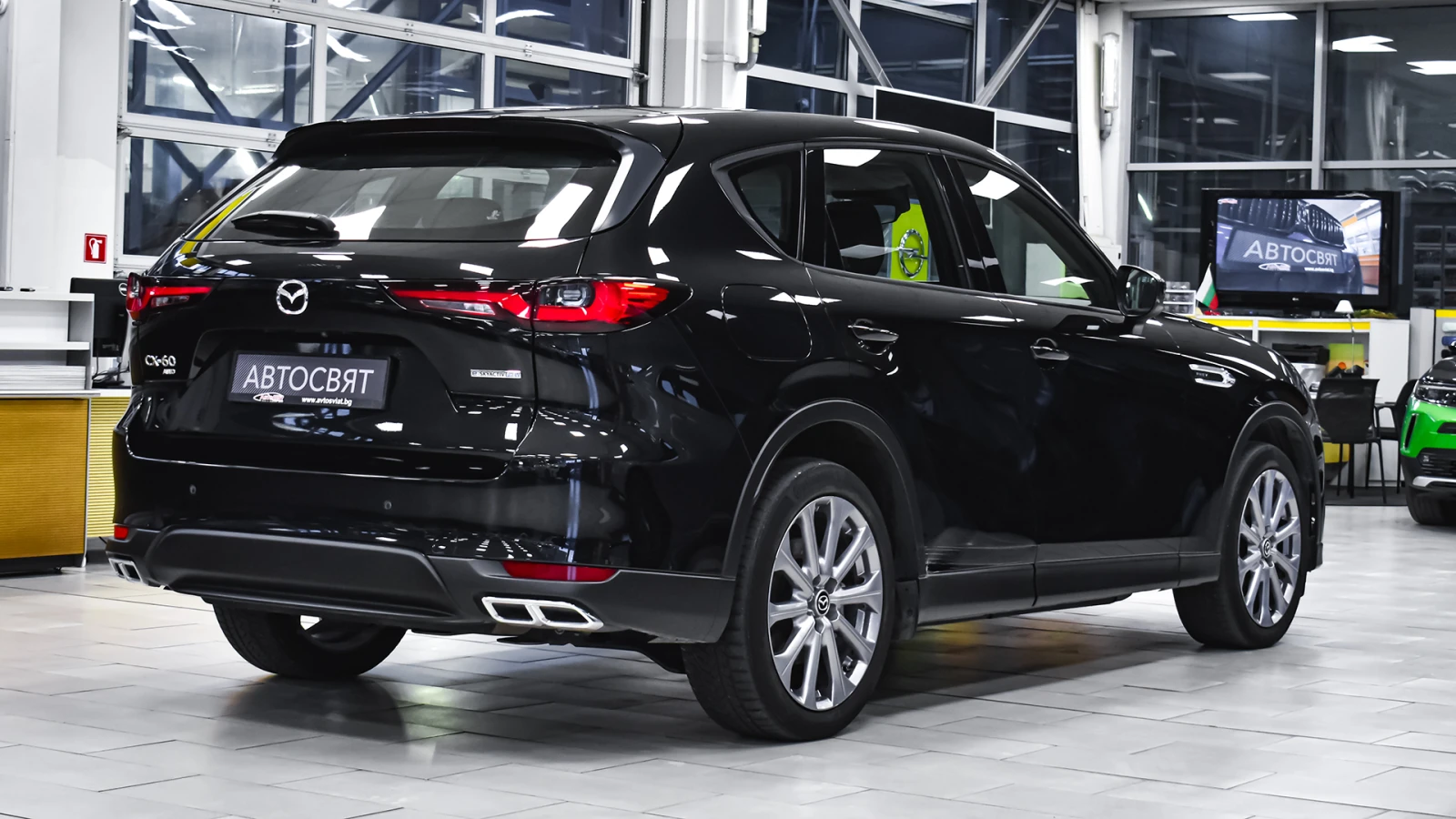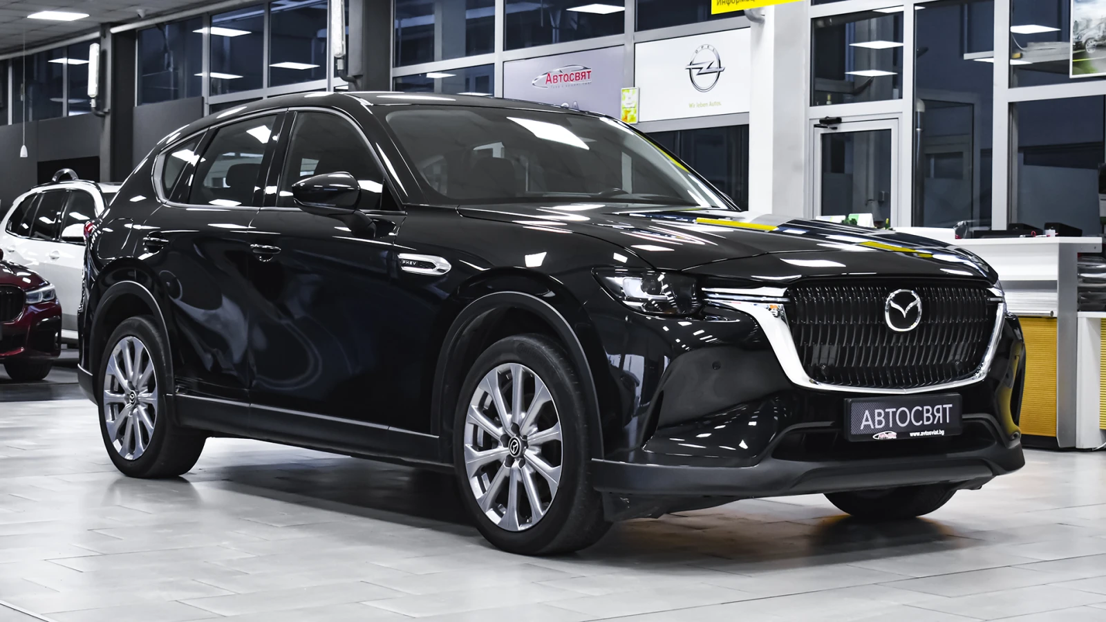 Автосвят ООД - официален представител на Opel и Mazda, предлага на Вашето внимание проверен автомобил Mazda CX-60 2. 5 e-SKYACTIV PHEV EXCLUSIVE LINE 4x4 Automatic Предимства: - 12 месеца или 20 000 км пробег гаранция; - безплатна пътна помощ за Р България в рамките на гаранцията; - напълно обслужен. Допълнителни услуги: - лизинг; - сътрудничество при регистрация; - възможност за обратно изкупуване; - посредничество при застраховане; - посредничество при завеждане на щети при застрахователя. Цвят - Jet Black Metallic Пробег с едно зареждане на батерията 60 км. (WLTP) Капацитет на батерията 17. 8 kWh 20 алуминиеви джанти Дизайнерски предни и задни светлини, радиаторна решетка черен пиано лак Арматурно табло, странична тапицерия на вратите: кожа Leatherette Регулиране на седалката на водача (8 посоки) Интелигентно отключване/заключване без ключ Изходи за вентилация за задната седалка Проекционен цветен дисплей върху стъклото пред погледа на водача HUD Амбиентно осветление отпред за краката Осветление на жабката Предна светлина на горната конзола Нагреватели в предното стъкло за размразяване в зоната на чистачките Подгряване на волана Подгряване на предните седалки USB (2 отпред, тип С+2 отзад, тип С) и гнездо 12V (опред и в багажника) LED фарове с устойчивост за измиване Kodo дизайн LED мигачи Предни LED дневни светлини Странични огледала с интегрирани LED мигачи Странични огледала - в цвета на купето Задни комбинирани светлини - LED Предна радиаторна решетка - черна Стъкла тонирани 25% Заден спойлер Странични огледала - електрически регулируеми, с отопление, автоматично сгъване Вградена антена в задното стъкло Скрити предни чистачки с интегрирана миеща дюза в рамото на чистачката Седалки с 3D дишаща текстилна тапицерия Арматурно табло с меко покритие Регулируема седалка на водача (общо 6 направления) Регулируема седалка на пътника (общо с 6 направления) 12 TFT цветен централен дисплей със сензорно управление само в спряно положение, гласово управление Електрически стъкла - предни и задни с функция с едно докосване Волан облицован с естествена кожа Монтирани на волана аудио и Bluetooth контроли Скоростен лост облицован с естествена кожа Задни седалки - система за сгъване на облегалките на седалките в съотношение 40: 20: 40 Климатик автоматичен - двузонов контрол на температурата със задни въздуховоди HMI (Human-Machine Interface) командно устройство за управление на системите Преден централен подлакътник Бутон за стартиране/спиране на двигателя 12 разширено информационно табло интегрирано в уредите пред водача Интелигентен ключ за отключване/заключване без ключ LED интериорно осветление Щора, закриваща багажното отделение 2 LED светлини в багажното отделение LED осветление за огледалата на сенниците Бордови компютър Автоматичен круиз контрол Пера за превключване на скоростите на волана Дистанционно заключване на вратите ADL (автоматично заключване на вратите с избор на режим на заключване/отключване) Електронна ръчна спирачка + автоматично задържане с HDP (хидравлична динамична ръчна спирачка) Автоматично включване на светлините и чистачките My Drive селектор за избор на задвижване Sport/Normal/Offroad/EV AC зареждане (2-фазно 7, 2 kW) Дистанционно предварителна загряване/охлаждане през телефон и приложението MyMazda ICE звуков емулатор за звук при електрическо задвижване Кабел за зареждане на обществена станция Мобилна станция за зареждане в ста