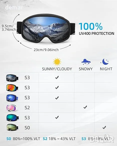Тези очила за сняг разполагат с издръжлива, гъвкава TPU рамка с двуслойна гъбена подплата за топлина и комфорт, идеални за зимни спортове. Проектирани с устойчивост на удар, 100% UV защита и система против замъгляване с двойна леща с покрития против надраскване, те осигуряват ясно виждане без отблясъци при предизвикателни условия. Широкогледната панорамна сферична леща поддържа OTG (over-the-glasses) дизайн за съвместимост с диоптрични очила, докато двупосочната вентилационна система подобрява въздушния поток, за да намали замъгляването. Удобната трислойна подплата от пяна се адаптира към различни форми на лицето за дълготрайно носене.