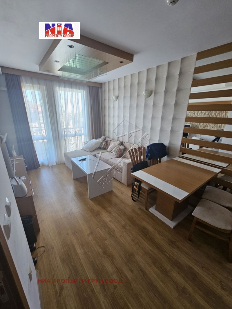 Апартаментът се състои от антре, всекидневна с кухня, спалня, баня със санитарен възел, разполага и с тераса с обзавеждане. Продаваме завършен с мебели и техника в перфектно състояние! Една прекрасна инвестиция като ваканционенимот.