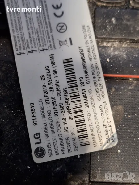 дисплей T370HW02 VG за телевизор LG модел 37LF2510 цената е БЕЗ T-CON BOARD тествана от нашия техник