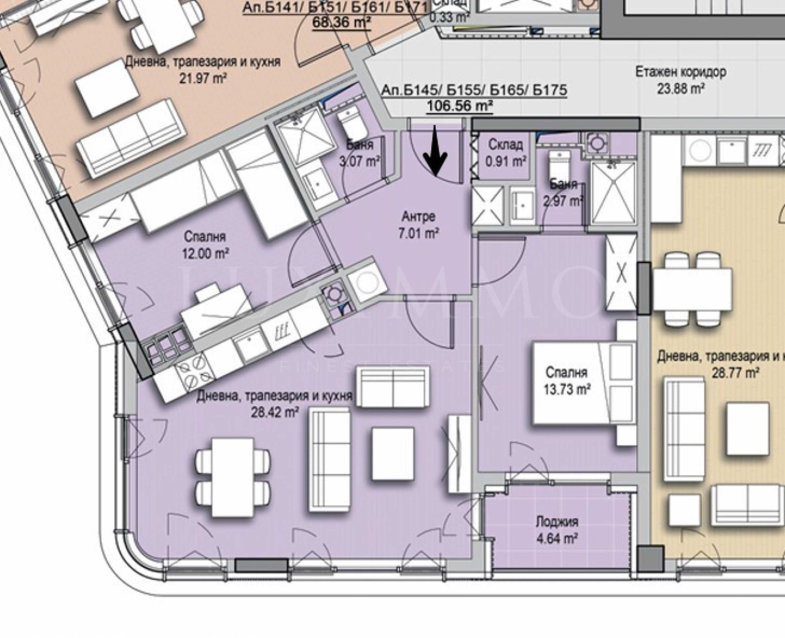 Представяме тристаен апартамент от 106.56 кв.м за продажба, в нов, модерен и иновативен комплекс на топ локация в един от най-предпочитаните и динамично развиващи се райони на София - кв. 'Витоша'.