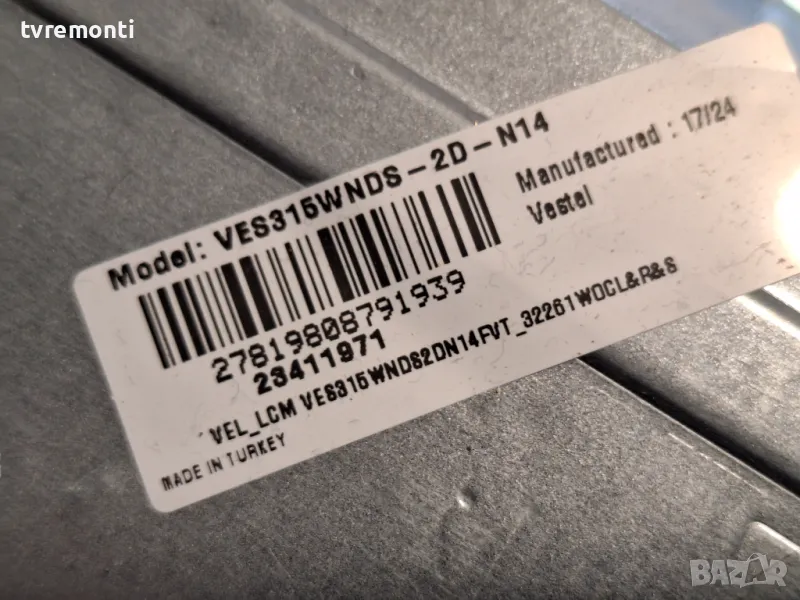 for телевизор OK модел ODL 32651H-TB ,for 32inc DISPLAY VES315WNDS-2D-N14 борда е гарантирано работещ Демонтиран от телевизор OK модел ODL 32651H-TB със счупен дисплей VES315WNDS-2D-N14 тествана от нашия техник Ремонт на всички марки съвременни телевизори