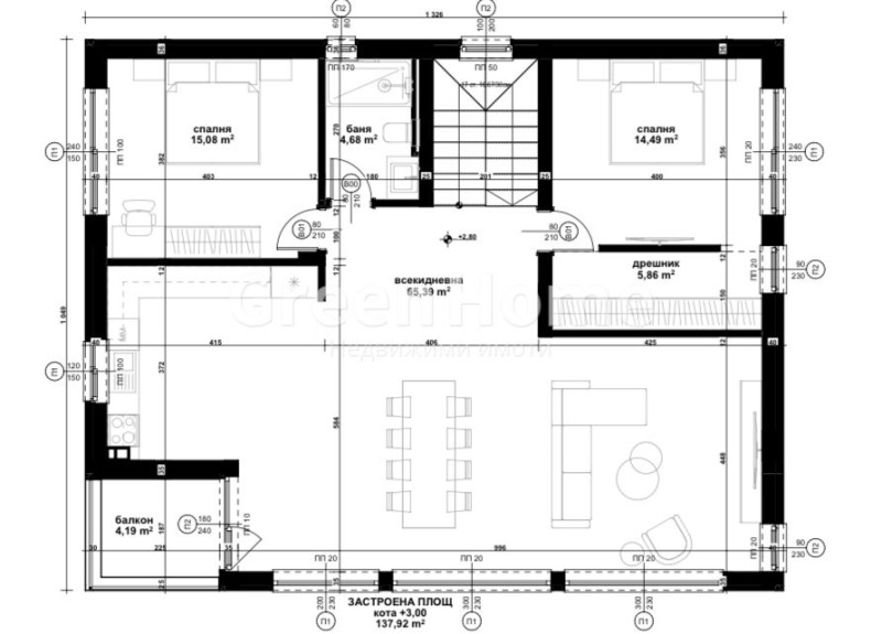 дневна с кухненски бокс 65кв.м