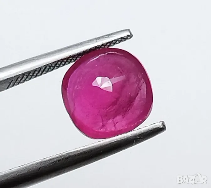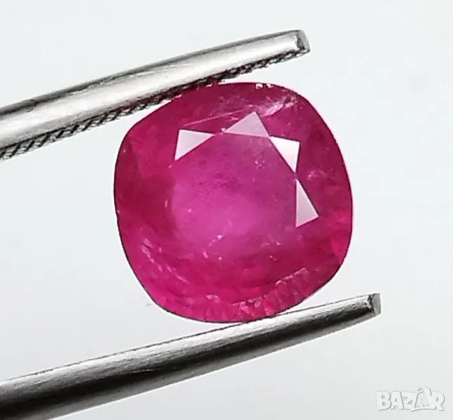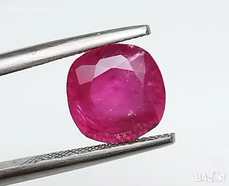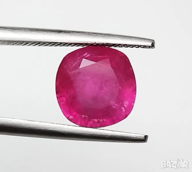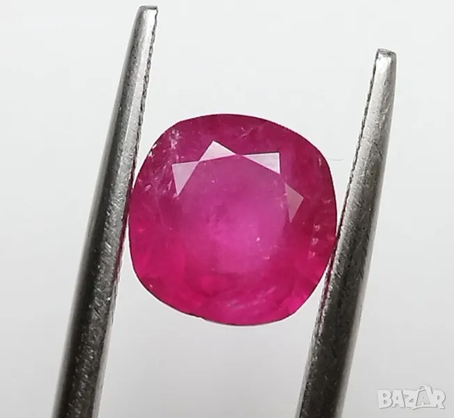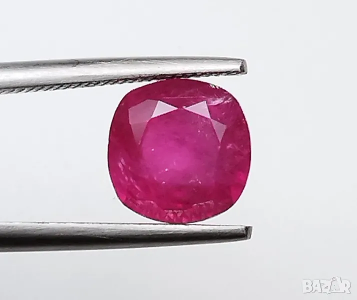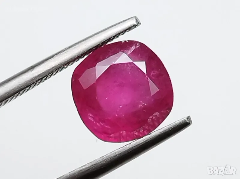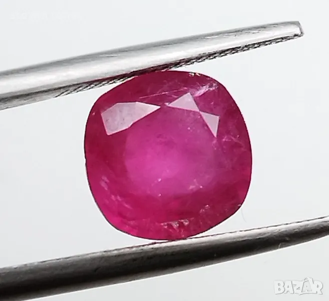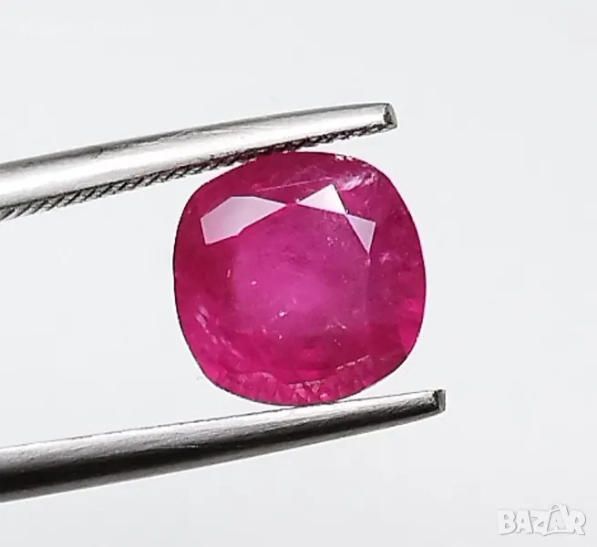 рубин с тегло от 2.22кт. и произход Мозамбик. С прозрачна чистота. Цвета е розово червен. Къшън с размери: 7.1 x 7.1 x 4.6 mm.