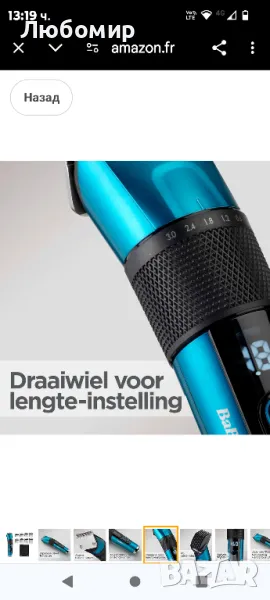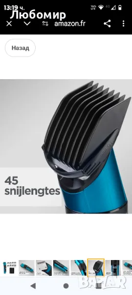 Ножове от японска стомана, 8 водача за рязане, 0,5-28 мм, регулиране на височината на косене, 5 позиции, LED дисплей, индикатор за нивото на батерията.Подвижни и миещи се остриета за лесно почистване,