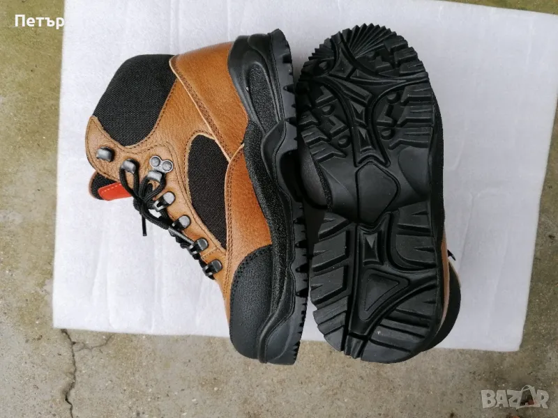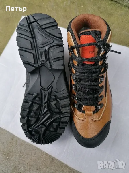 Продавам чисто нови качествени дамски туристически /зимни, трисезонни / високи обувки. Обувките имат вградена водоустойчива мембрана. Имат протектор за удар в камък. Кожата е естествена лицева и промазана. Стелката е ортопедична с размер 24.5 см. Грайферите са пластични с добро сцепление. Обувките са дълготрайни.