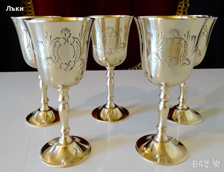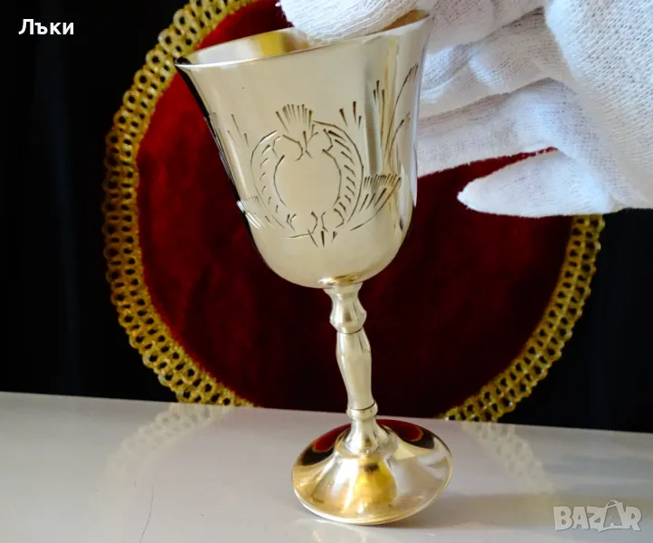 Старинни английски чаши на столче,за ракия,коняк,майсторска