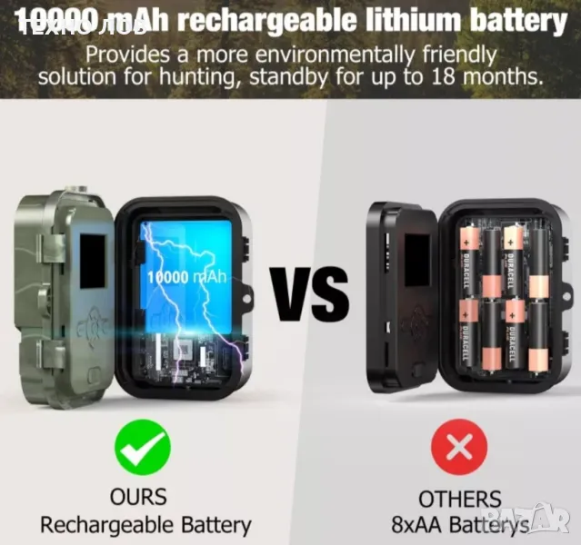 Описание-Цена с 2 броя батерии: 319лв. Най добрия и най продаван продукт на пазара.Много добри цени при закупуване на едро!Съдействие за настройване на камерата.Изпраща 36mp снимки и видео мигновено на безплатно приложение за Android и IOS.Нощно виждане без никаква светлина Издръжлива на всякакви метеорологични условия4К 30FPS видео256GB съхранение36MP кристално чисто нощно изображение0,3 секунди скорост на задействане10 000 mAh литиева батерияIP66 водостойчива Бързо изпращане на снимки и видео.Всякакъв вид настройки и гледане на живо в приложението.Камерата Suntek HC940 Pro e 4G