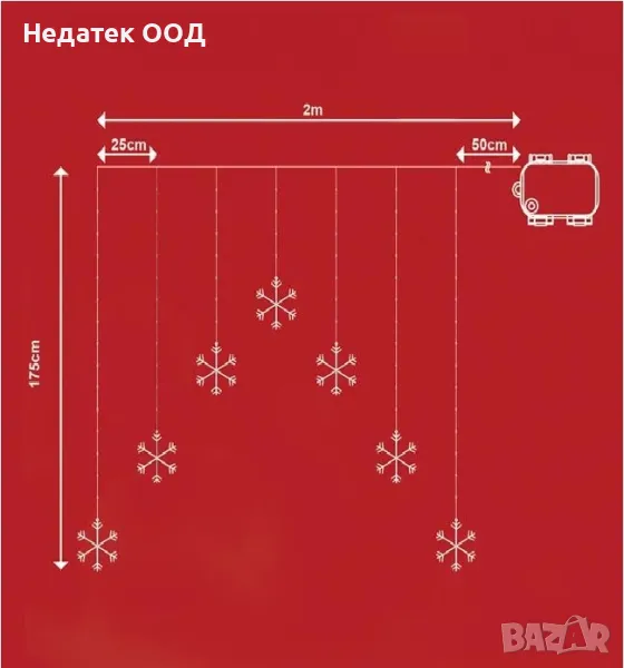 Коледни лампики Снежимки, Бял, 2 м. → Обява 48295675