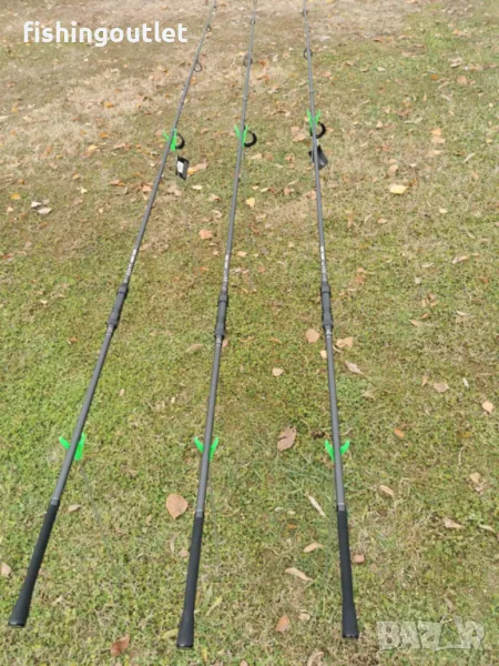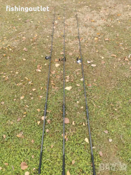 Висок клас шарански комплект. Три въдици 3.60мт и три макари 11 лагера