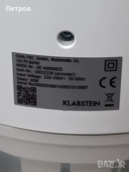 Охладител на въздуха  KLARSTIEN, снимка 1 - Вентилатори - 48295778 Охладител на въздуха  KLARSTIEN, снимка 2 - Вентилатори - 48295778 Охладител на въздуха  KLARSTIEN, снимка 3 - Вентилатори - 48295778 Охладител на въздуха  KLARSTIEN, снимка 4 - Вентилатори - 48295778 Охладител на въздуха  KLARSTIEN, снимка 5 - Вентилатори - 48295778 Охладител на въздуха  KLARSTIEN, снимка 6 - Вентилатори - 48295778 Охладител на въздуха  KLARSTIEN, снимка 7 - Вентилатори - 48295778 1/7