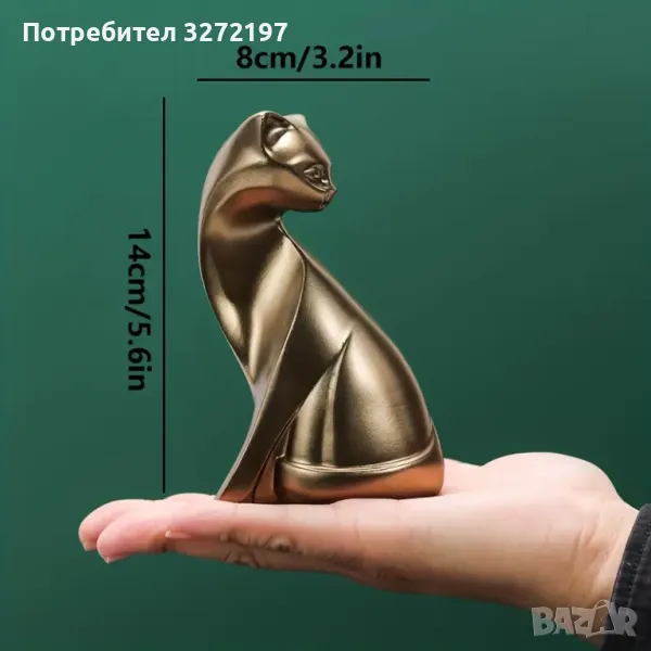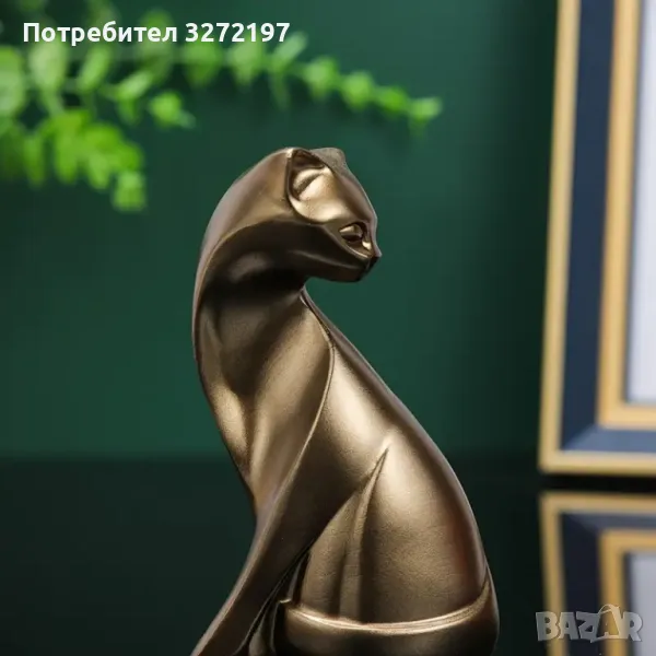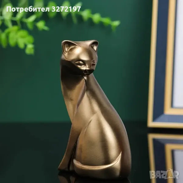 котка с античен бронзов завършек, модерен минималистична фигура, елегантна украса за домашен офис или масичка