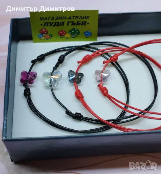 4 бр. гривнички с пеперуда тип Сваровски кристали. За подарък за приятелки. Бижута Луди гъби. Идеи за подаръци.