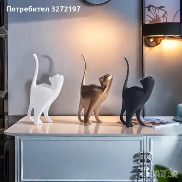 Елегантна Ръчно Изработена Скулптура на Котка - Шикозна Фигурка на Котка