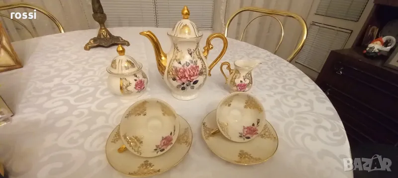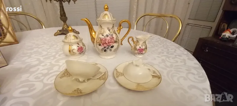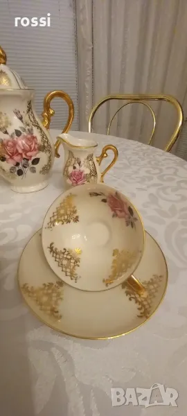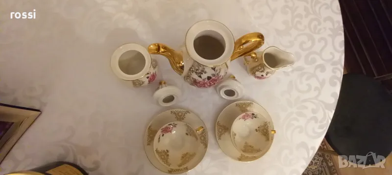 Нов, много красив сервиз от Германия за малко кафе, мока, еспресо за двама, пълен комплект, от началото на миналия век, купен преди доста години от Германия.