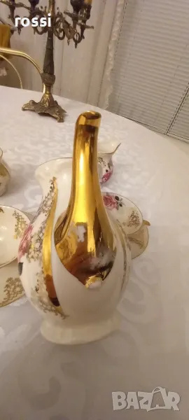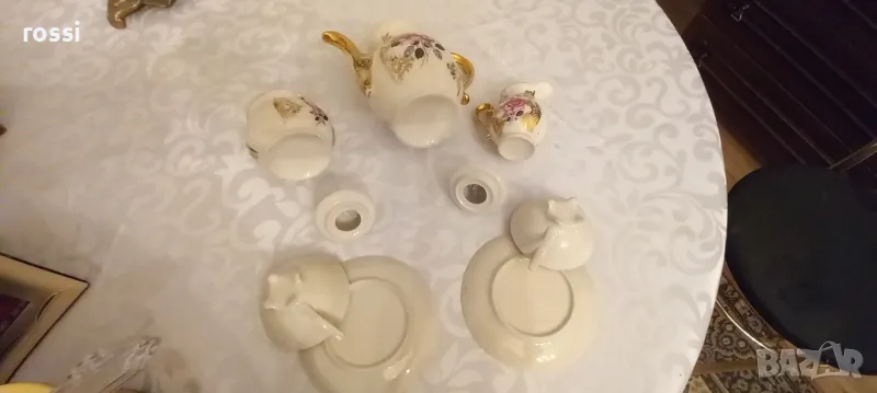 В началото на миналия век е имало изискване порцелановите немски стоки за износ да са без маркировка. В долната част на чучура на каната на места не е нанесена плътно позлатата(има снимка) и може би затова сервизът е останал в Германия.