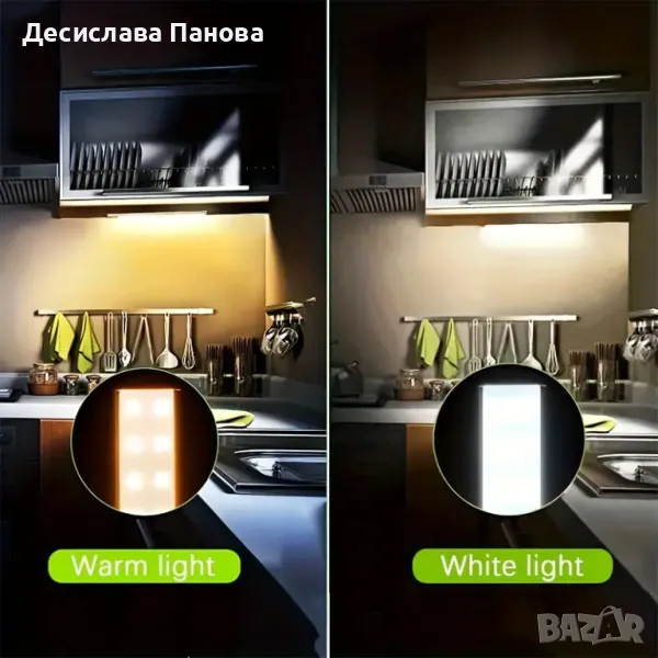 LED лампа със сензор за движение - лампа за шкаф, осветление за гардероб, нощна лампа за кухня, декорация.