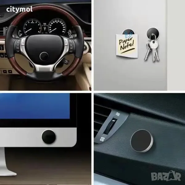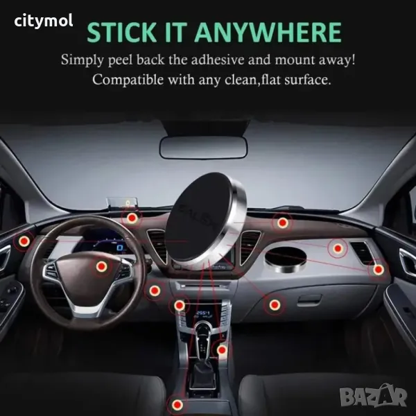 Стойка за кола за мобилни телефони с минималистичен дизайн и малки размери. Фиксирането на опората може да се извърши навсякъде с помощта на двойно залепваща лента.