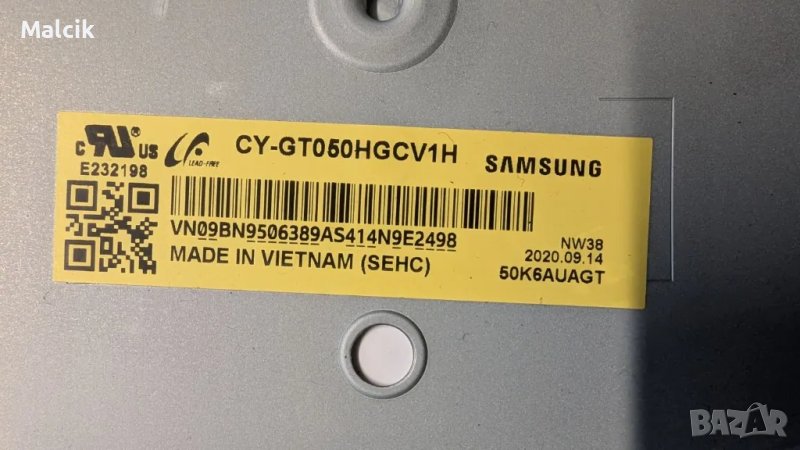 Телевизора е със счупен дисплей и main boarda се рестартирва и се продава на части или за части цял. Модела на телевизора е Samsung 50TU7172U и модела на дисплея е CY-GT050HGCV1H.