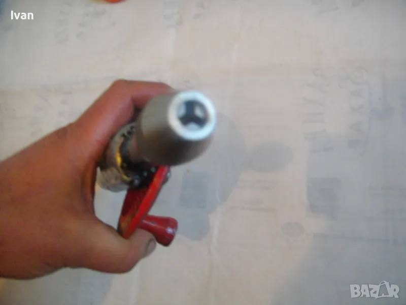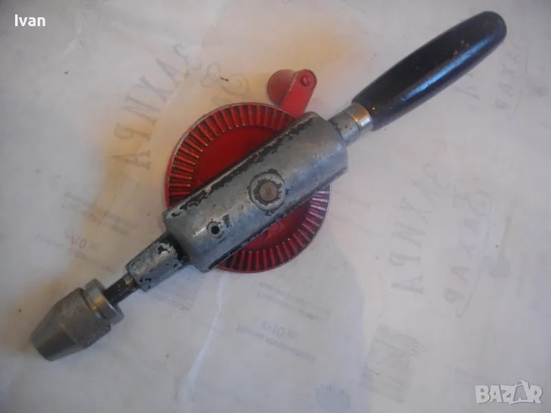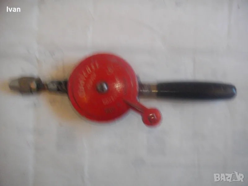ОПИСАНИЕ на ръчна дрелка маткап английска. Цена 99 лв.Старо качество. Отлиично състояние и оригиналната боя по дръжката. Марка, маркироовки - Made in ENGLAND - Qualcast Clipper Bouble Pinion. Цялоостна дължина - 305 мм. Алуминиево тяло, дървена дръжка с оригинална черна боя и прорези за окачване. Патронник - стоманен с неръждавейка покритие, захват 0,5 - 8 мм.