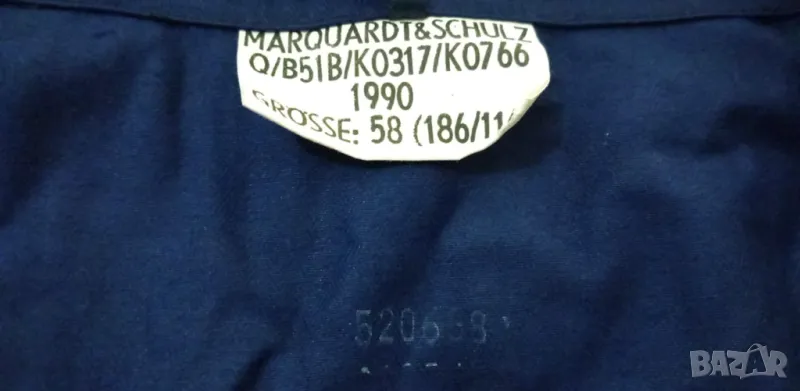 Marquardt & Schul е производител на военно облекло за различни страни от еврозоната, главно за германската армия. Гащеризонът е предвиден за работниците в базата. Панталонът има проходни джобове от двете страни за вътрешен достъп и шнурове за регулиране на крачолите.