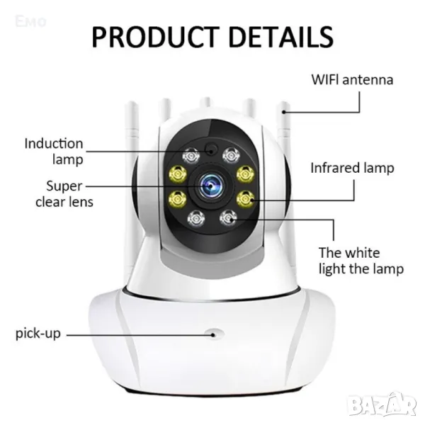 Безжична панорамна камера за видеонаблюдение с 360-градуса и 2K пиксела IP36