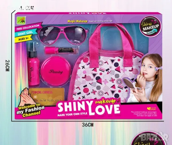 Козметичен комплект с чанта Shiny Love е подходящ продукт за ежедневна детска игра и качествена козметична играчка.