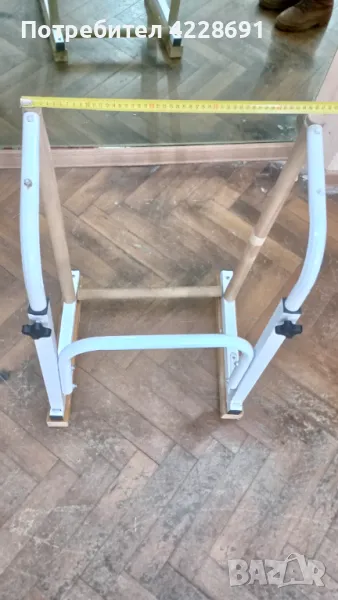 Продавам две леки метални конструкции, една с дървени добавки, а другата черна и без. Размерите се виждат на снимките, като височината на черната е ок. 70 см. За София е възможно и лично предаване по уговорка, а за страната по куриер.