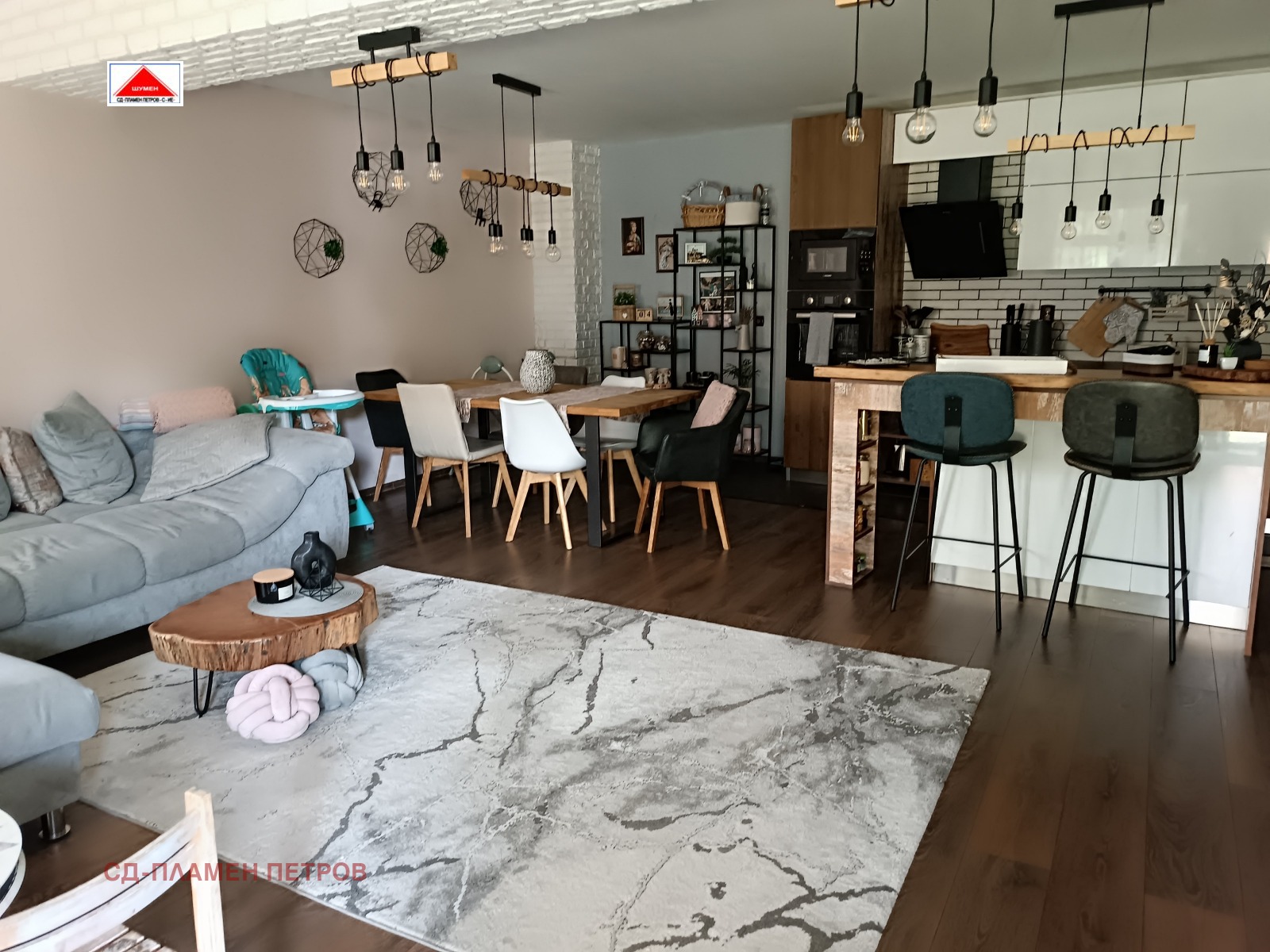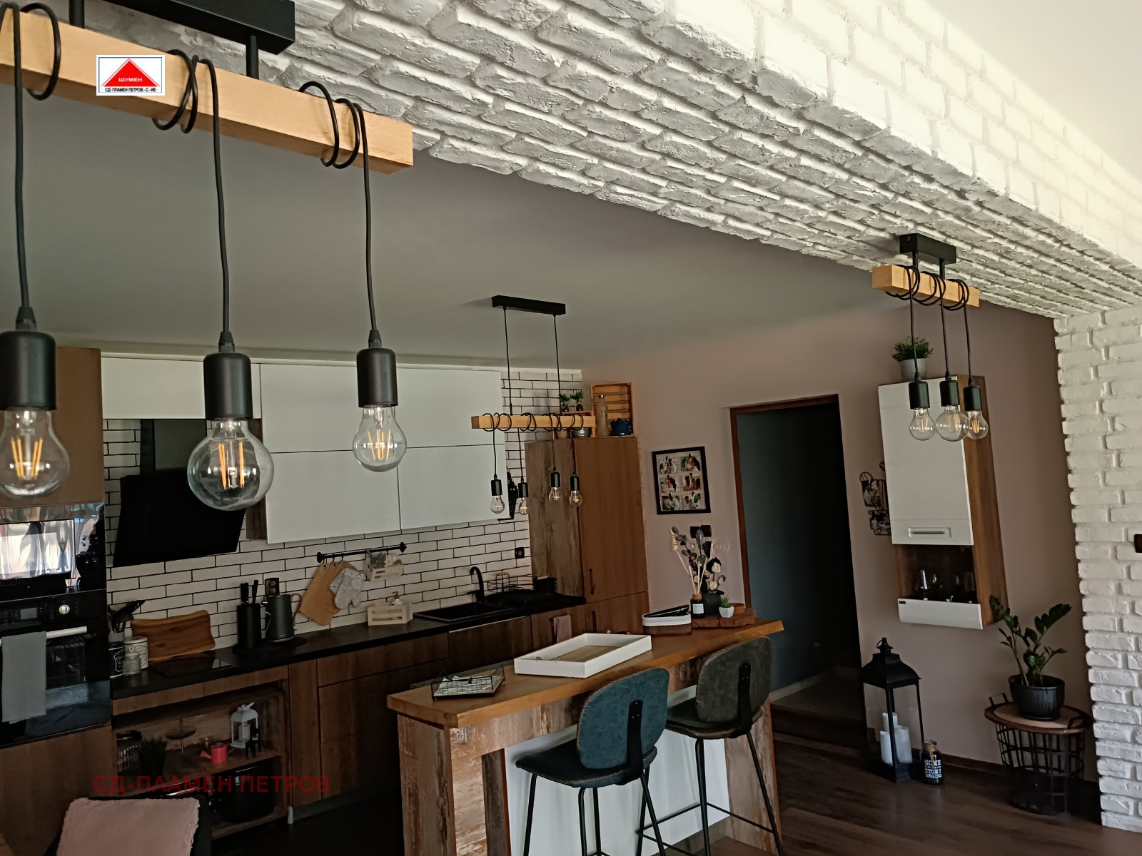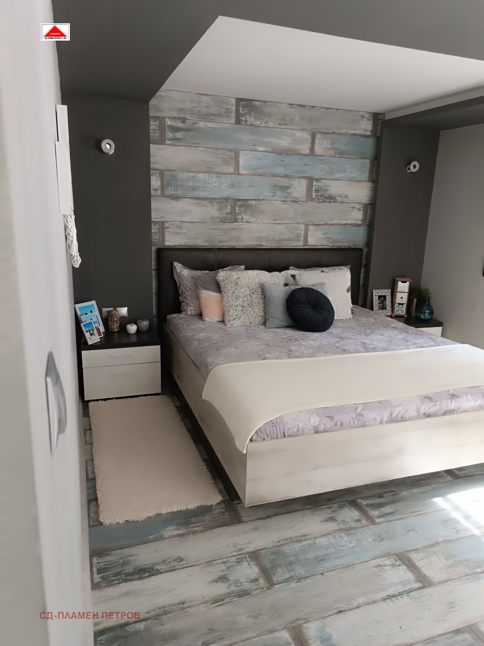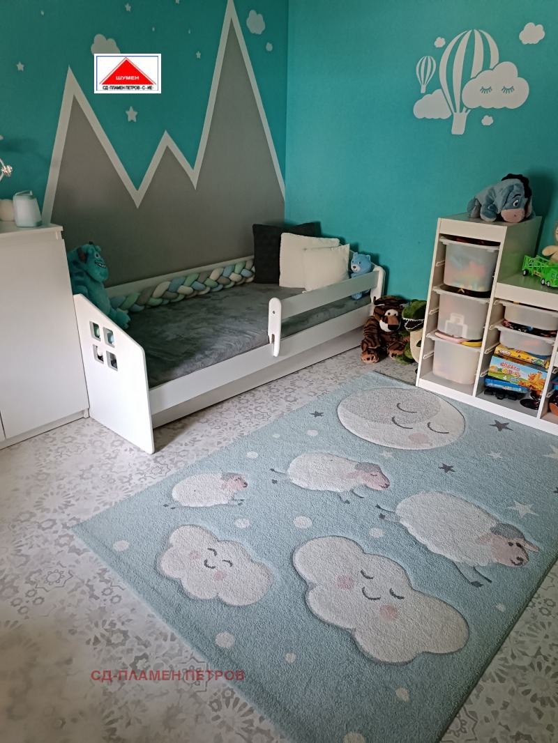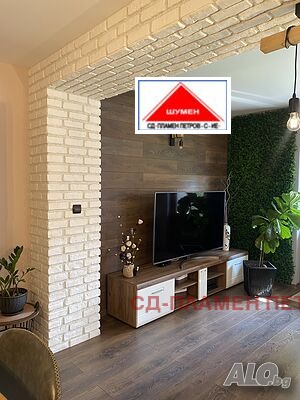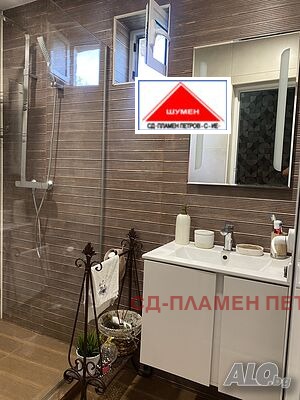 ПРОДАВАМЕ МОДЕРНА ЕДНОЕТАЖНА КЪЩА в с. Панайот Волово на 7 км от град ШУМЕН с прекрасен докориран двор с овошки и цветна градина .Разположението на къщата се състои от входно антре с две спални вътрешен коридор с отделни баня тоалет и перално помещение просторен хол с кухня и остров. Къщата има три входа и възможност за още две спални помещения, разполага със маза гаражна врата с две паркоместа. Къщата се продава обзаведена и оборудвана.