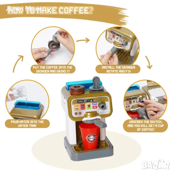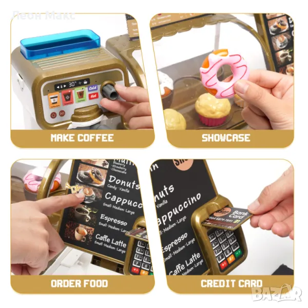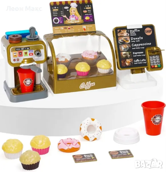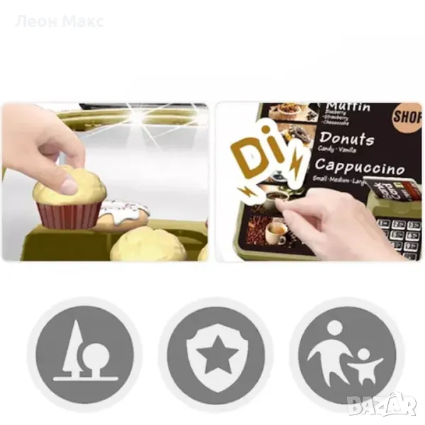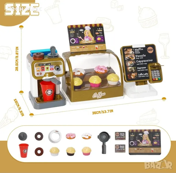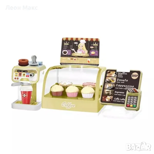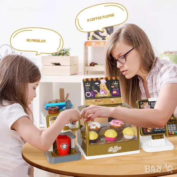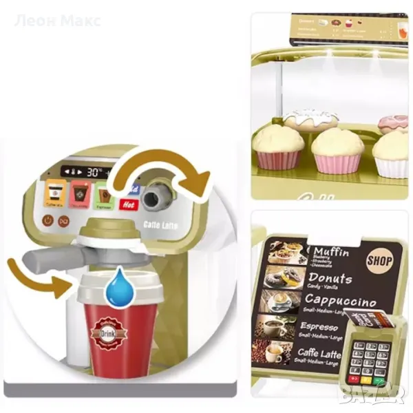 С реалистична водна функция за приготвяне на кафе и касов апарат със звукови ефекти. Децата се учат да правят и продават кафе.