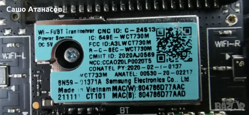Wi-Fi/BT Transceiver/IR/POWER Button Board : BN59-01371A / WCT730M - 40лв.