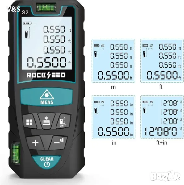 Лазерна ролетка, цифров лазерен дистанциономер Rockseed 50 метра, с 2 мехурчета