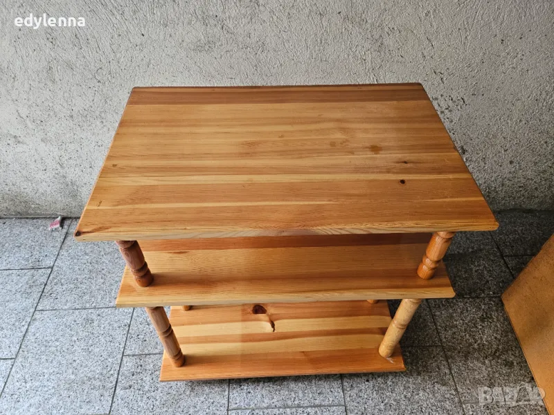 ТВ шкаф от масив с три рафта, много запазен. Размери: височина 72, ширина 70, дълбочина 45. Цена 120 лв.