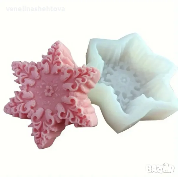 Голяма дълбока снежинка за свещи гипс сапун смола шоколад КОД 4252 → Обява 48302975