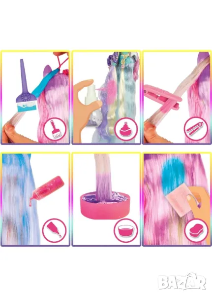 Комплектът включва: кученце за прически VIP PETS, 6 аксесоара за коса, столче с вендуза и колекционерско ръководство.