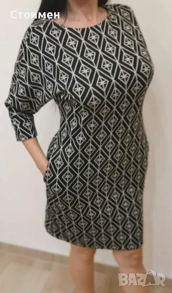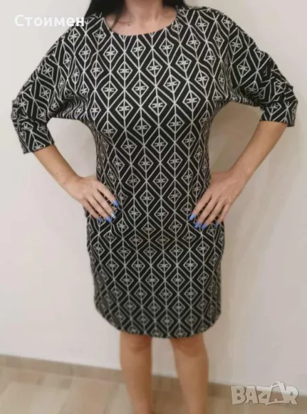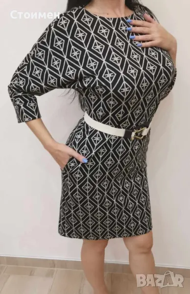 Прекрасна рокля с коланче, с прилеп ръкав и джобове.