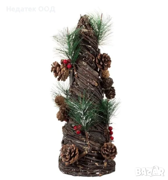 Коледна осветена украса, шишарка с борови клонки, шишарки и червени плодове. Има 15 преплетени led светлини с топла бяла светлина. Работи с 2 батерии АА (не са включени). Украсете интериора на дома си с коледни дизайни с красиво осветление! Магията на Коледа оживява!