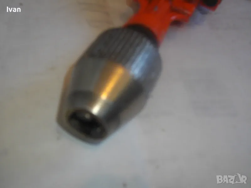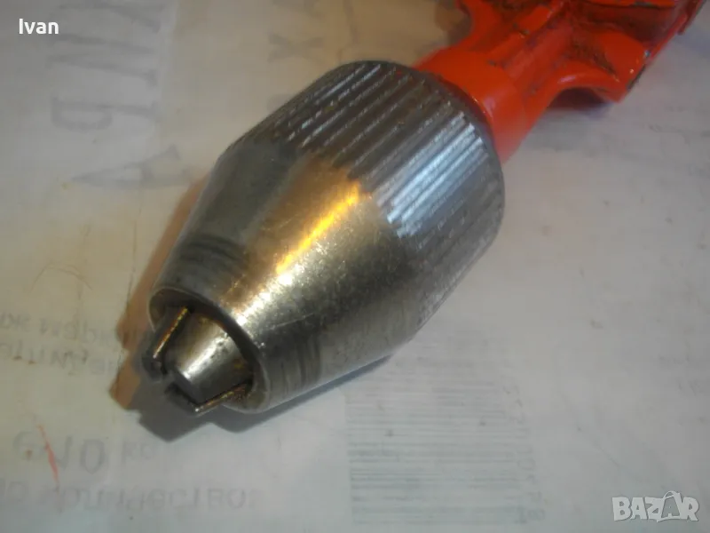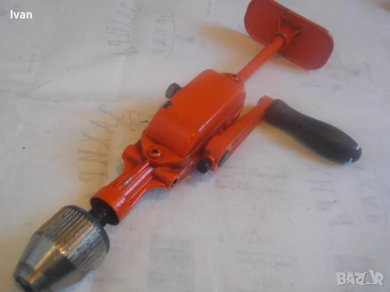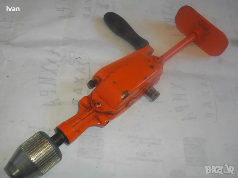 ОПИСАНИЕ на оранжев маткап. Цена 99 лв. Ръчна дрелка бормашина с опорно рамо, от старото полско каество и от стария материал. Масивен инстумент за иистинска работа. Почти нов, с много запазен външен вид и отлично работно техническо механично състояние. Цялостна дължина 330 мм. Патронник до 8 мм захват - отличен, с леко работещ механизъм. Странична алуминиева дръжка с лакирано фабрично дървено покритие. Метален корпус на инструмента. Тегло на дрелката - 1,0 кг. Поставен за проба и тест нова бргия свредло за дърво и метал.
