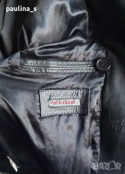 Унисекс, рокерски бранд яке, модел кардиган с двуредно закопчаване "Wave Rebel". Снимките са реални в дамски и мъжки тип закопчаване. Кожата и изработкате са много качествени, копчетата са хлабави - вижда се добре. Кожата е бизонски бокс, много дебела и здрава, хастарът е от памучен сатен, има вътрешен джоб с цип, брандирано, уникат. Без дефекти по кожата и хастара, една бройка. Много рядка находка, за състоянието.