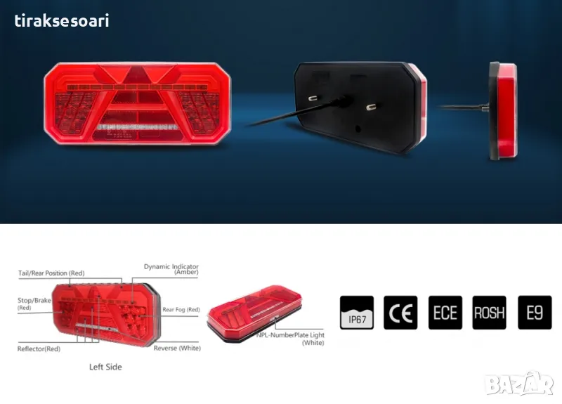 Комплект Ляв + Десен Мултифункционални Диодни LED Лед Стопове с Бягащ Мигач Неон Neon Ефект 12V 24V 305mm X 140mm X 35mm E9 За Бус Камион Тир Ремарке Караванa