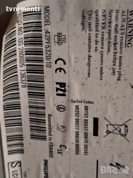 Платка 3139 123 6141.1 WK523.4 от телевизор PHILIPS модел 42PF5320/1 For 42Inc Display S42SD-YB05 борда е гарантирано работещ Демонтиран от телевизор PHILIPS модел 42PF5320/10 със счупен дисплей S42SD-YB05 тествана от нашия техник Ремонт на всички марки съвременни телевизори