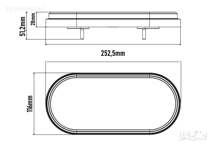 Размери: Дължина - 252,5 мм,Широчина - 116мм