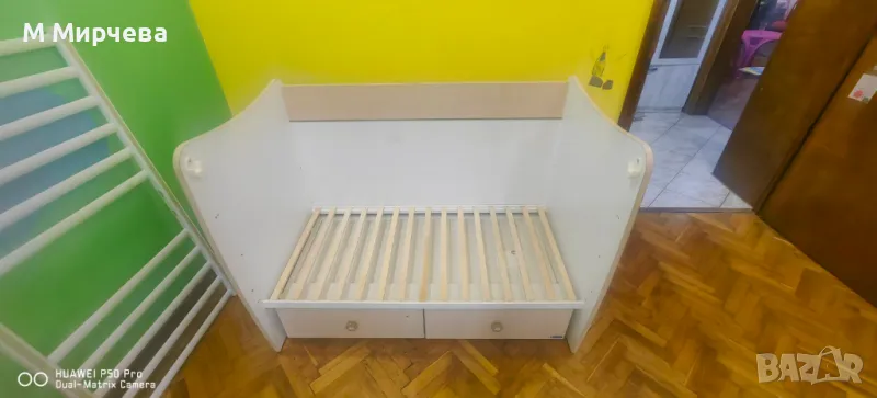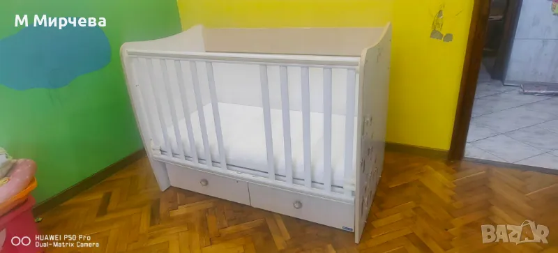 Леглото е ползвано малко, защото детето спеше при нас основно. Забележката е залепени стикерчета на едната страна, които при желание мога аз да премахна. Подарявам и матрачето към него. Леглото е разглобено и стречовано.
