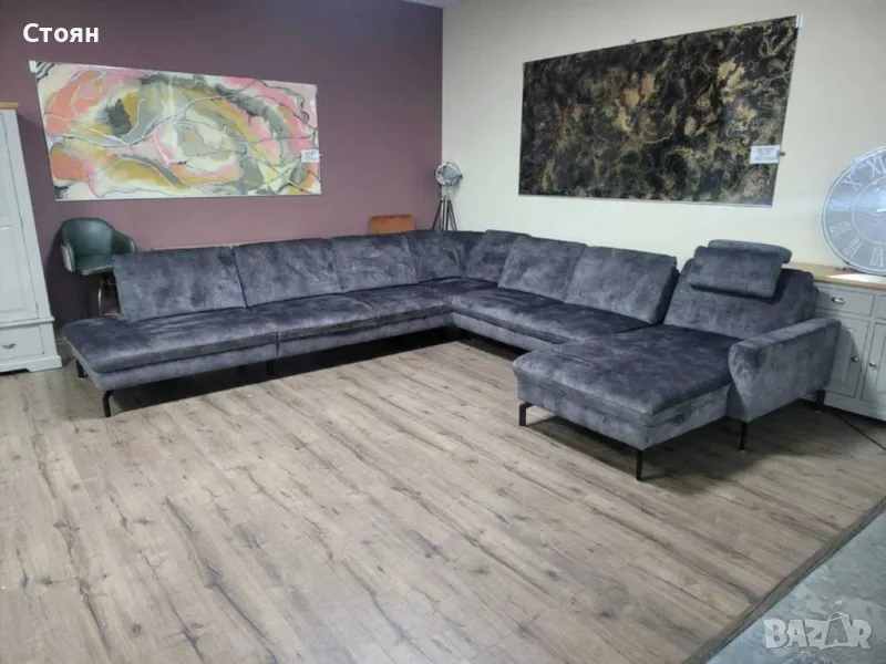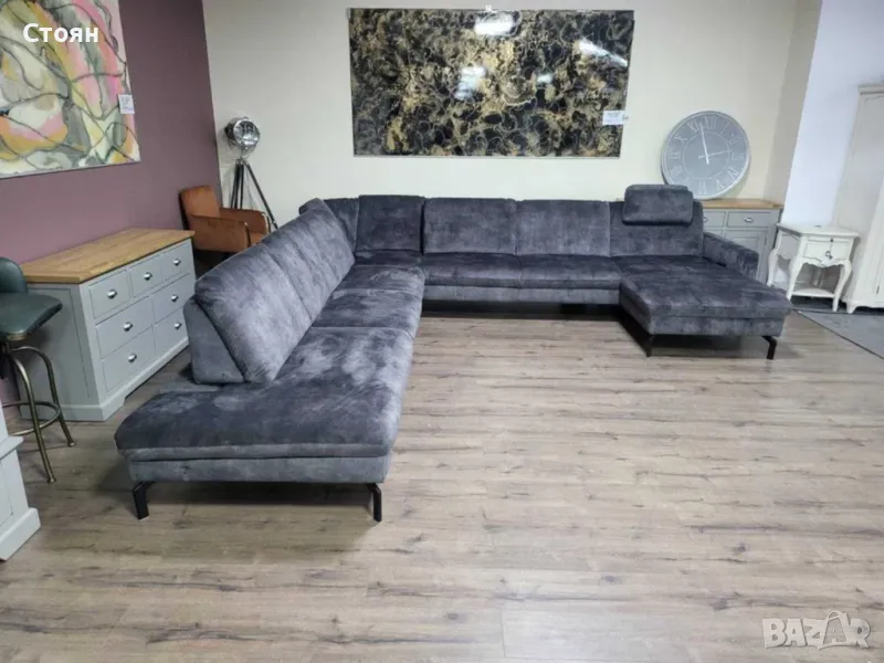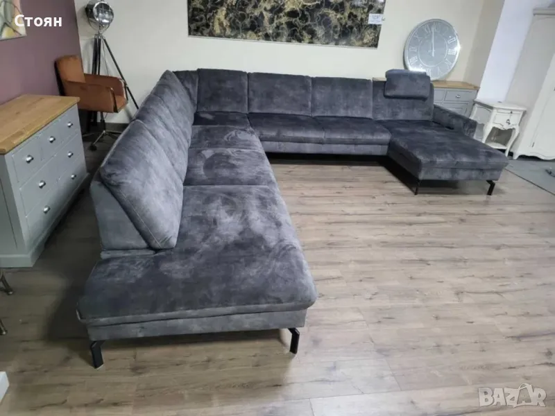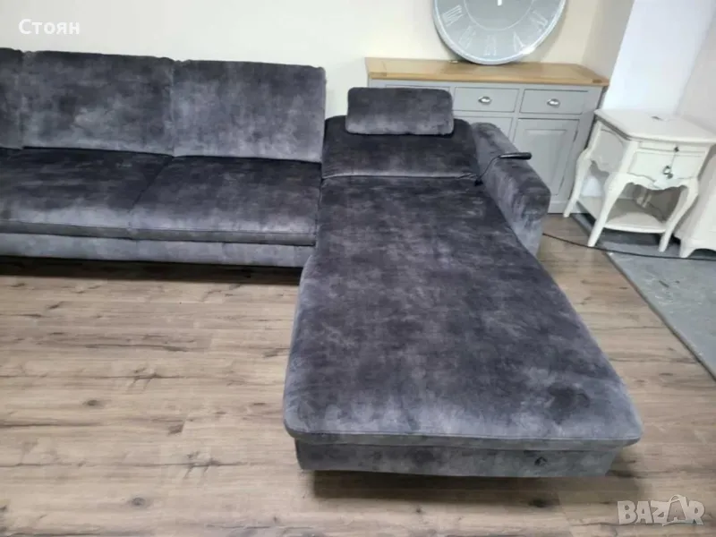 Голям сив П образен ъглов диван от плат с ел. лежанка "LS701521"