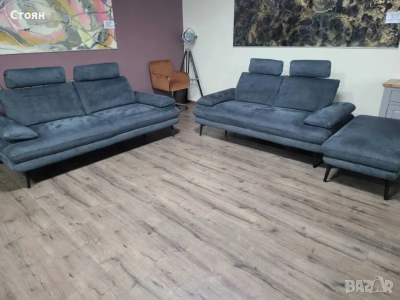 Тъмно сив комплект дивани от плат тройка и двойка "Dieter Knoll"