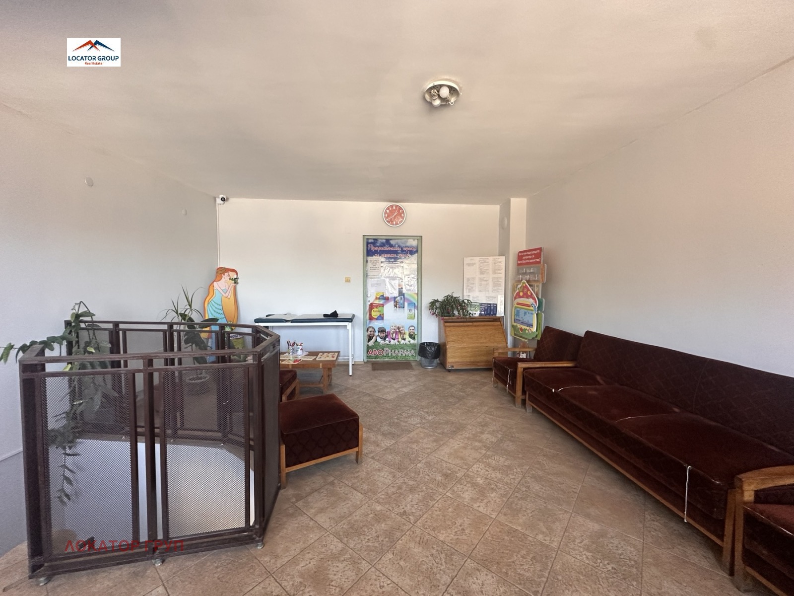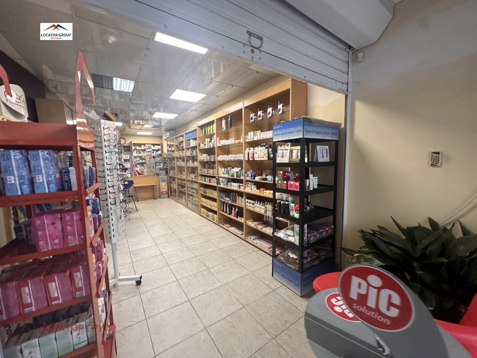 1-ви етаж (действаща Аптека): Отворено помещение, баня с тоалетна, склад.