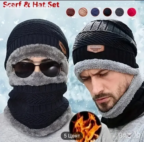 Плетен Комплект Шапка и Шал - Топли Зимни Аксесоари с Подплата от Полар за Мъже и Жени, Уличен Стил