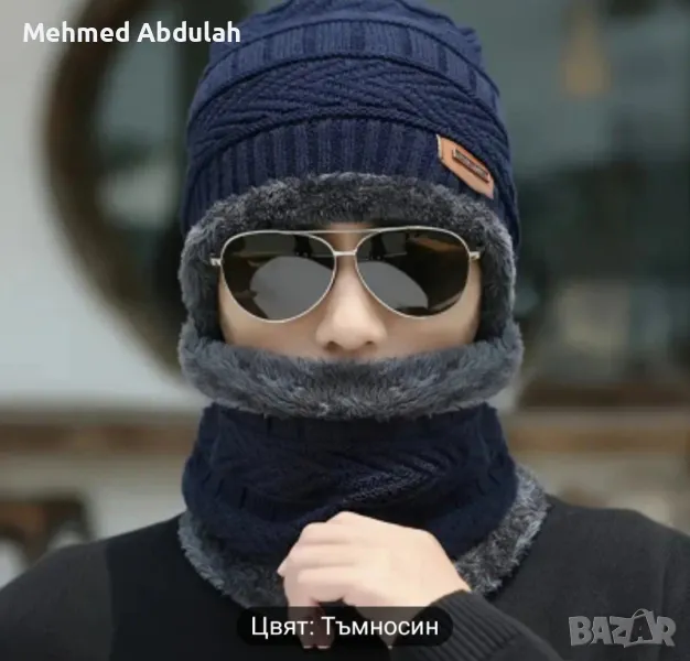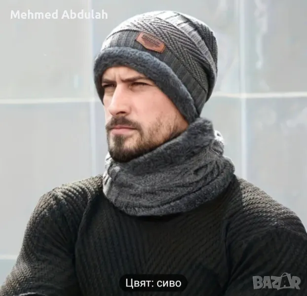 Три цвята Плетен Комплект Шапка и Шал → Обява 48308149